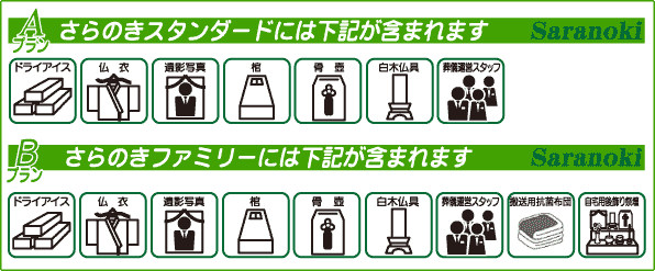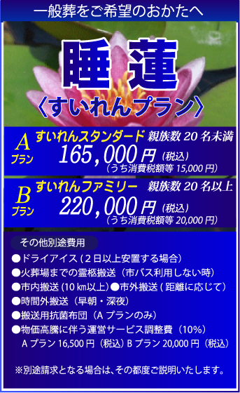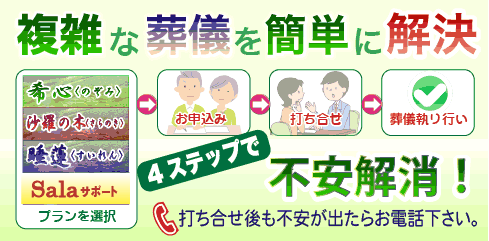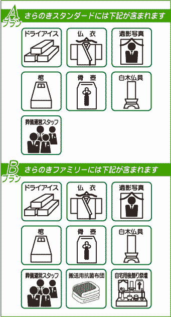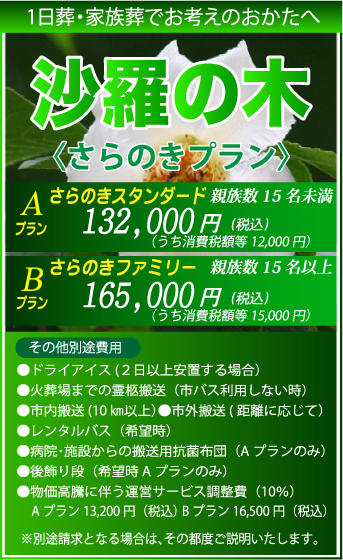 告別式も含む「さらのき」プランです。家族葬・1日葬など当社一番のおすすめプランです。