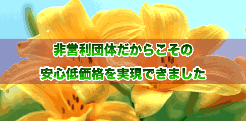 非営利団体だからこその低料金プランを多数ご用意しております。「請求書を見て驚いた」などそんな失敗のない、施主本位のリーズナブルな料金プランのご提供です。別途ご請求(追加料金等)の発生時はその都度ご説明いたしますので安心してご利用いただけます。